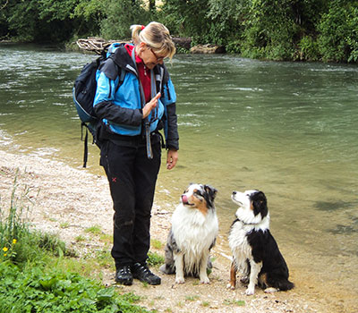 - avoid walking during the hottest months and times of day: always keep your dog cool, to avoid heatstroke, taking advantage of the drinking fountains and streams for refreshing his body and his paws